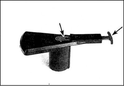 6. Отверните винты крепления и снимите крышку распределителя зажигания. Протрите крышку начисто и проверьте наличие внутри и снаружи крышки трещин, следов поверхностного пробоя (тонких обуглившихся дорожек), износа, подгорания и ослабления контактов.