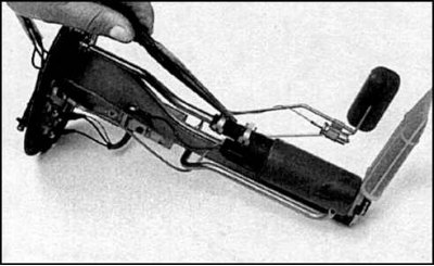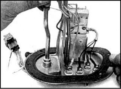 5. Отверните болты и наклонив, осторожно достаньте насос в сборе с датчиком.