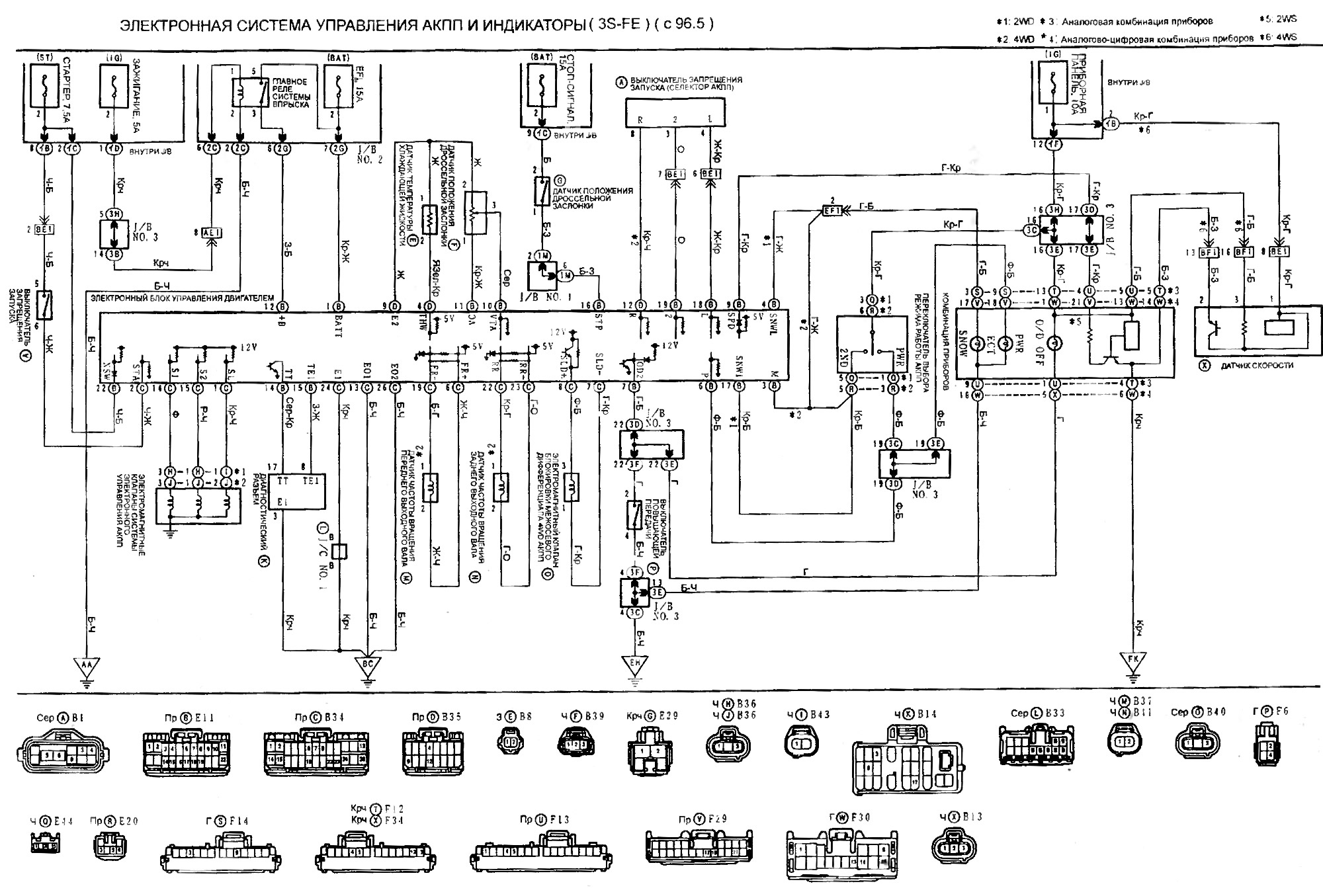 Электронная система управления АКПП и индикаторы (3S-FE, с 96.5) [Toyota Camry Vista-V40]