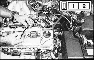 Внимание! На двигателе V6 для проверки подключайтесь к проводам, ведущим к задней головке цилиндров.
