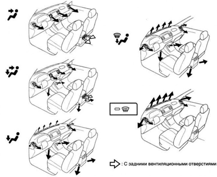 Рис. 1.116. Схема регулировки воздушных потоков в салоне автомобиля