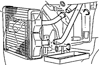 9. Снимите хомуты и кольцевые уплотнения, отсоедините трубки подвода и отвода охлаждающей жидкости от отопителя.