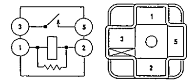 2. Проверьте наличие проводимости между выводами "3" и "5" при подаче напряжения аккумуляторной батареи на выводы "1" и "2".