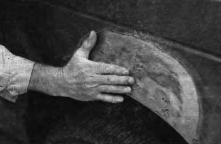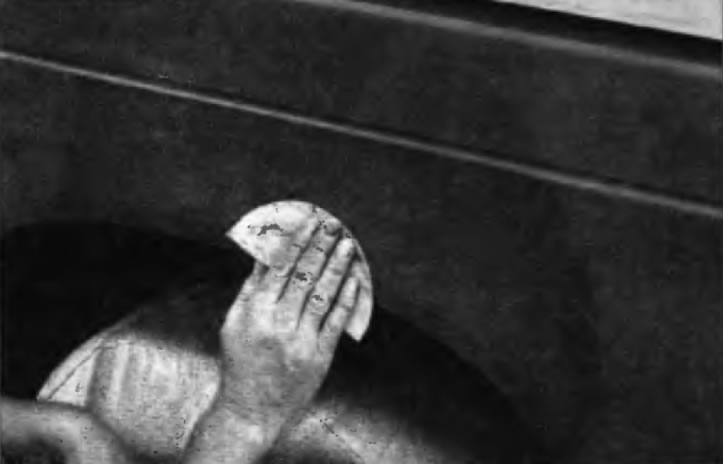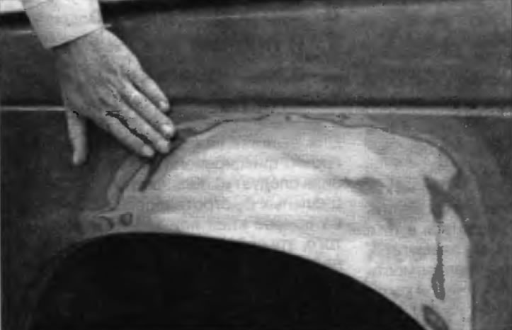 На этих фотографиям показана технология правки простых вмятин. Они относятся к параграфу «Незначительные повреждения кузова — ремонт» в этой главе и их не следует использовать как единственное руководство не ремонту кузова автомобилей, представленных в этой книге.