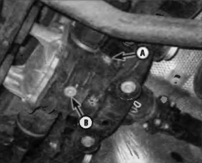 Рис. 25.2. Расположение контрольной/заправочной пробки (А) и слитой пробки (В) заднего дифференциала