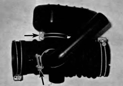 Рис. 9.4. Для снятия резонаторов отпустите хомуты и снимите резонаторы с впускного воздухопровода (показана модель с двигателем VG)