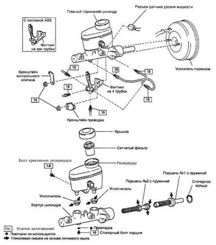 Примечание. Вышедший из строя ГТЦ подлежит замене. Не рекомендуется предпринимать попытки проведения восстановительного ремонта главного тормозного цилиндра.