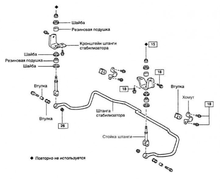Компоненты установки заднего стабилизатора поперечной устойчивости