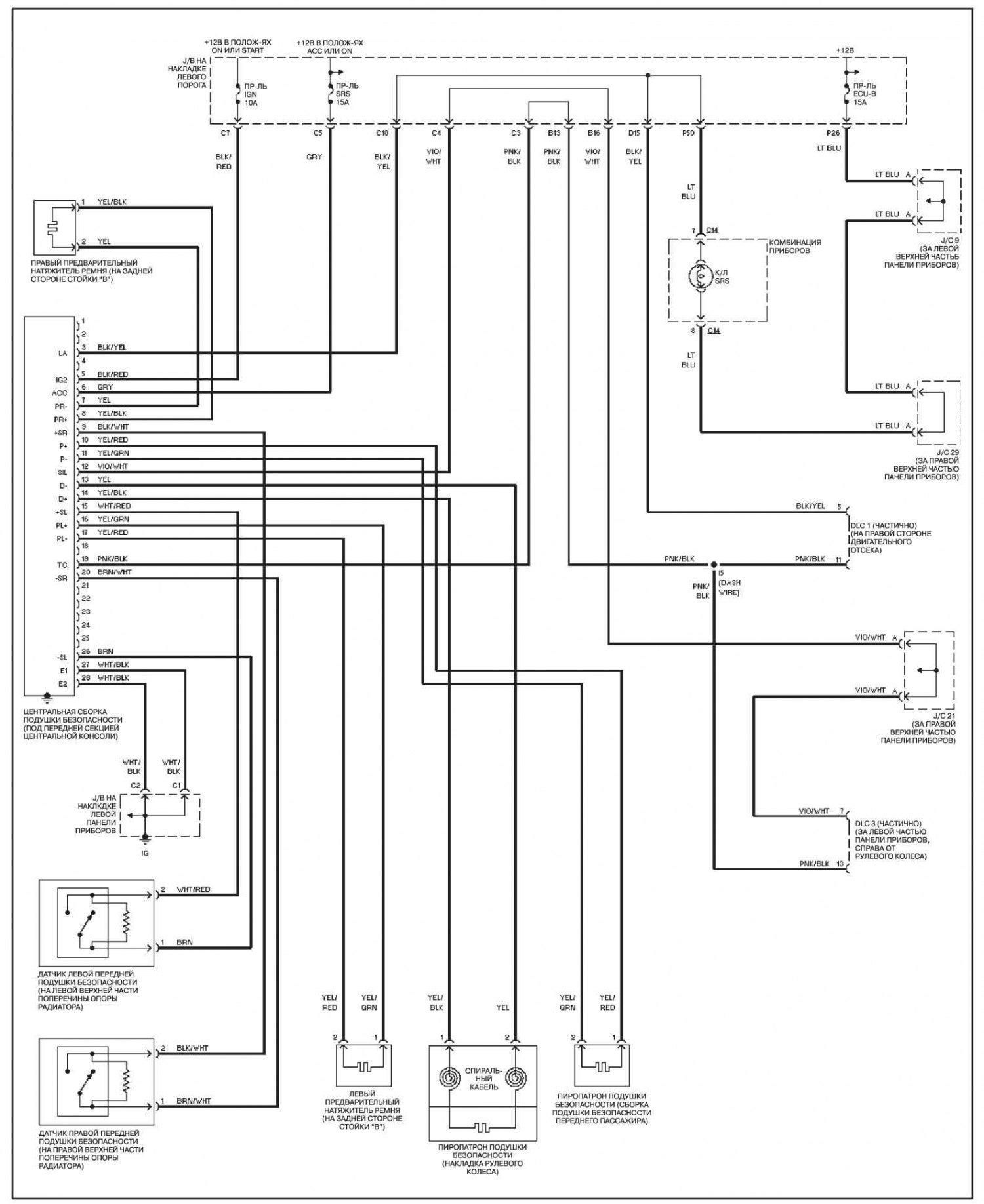 Статья о ремонте японских автомобилей Тойота Крузер 100 (1998-2007): Электросхема системы дополнительной безопасности (SRS): https://www.toyotaman.ru/Land_Cruiser/J100/electrics/schemes/elektroshema-sistemy-dopolnitelnoy-bezopasnosti-srs