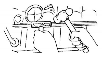 6. Молотком с мягким бойком аккуратно обстучите поддон с целью разрушения слоя посадочного герметика (обратитесь к сопроводительной иллюстрации).
