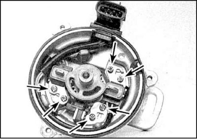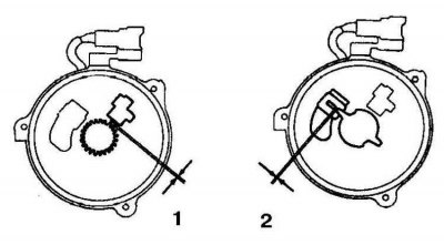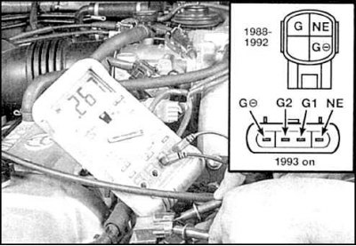 1. Отсоедините разъем от распределителя и измерьте сопротивления между выводами индукционного датчика.
