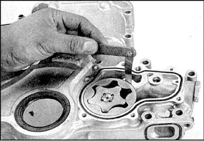 6. Если зазоры превышают норму, то роторы в комплекте замените. При необходимости замените корпус насоса (переднюю крышку).