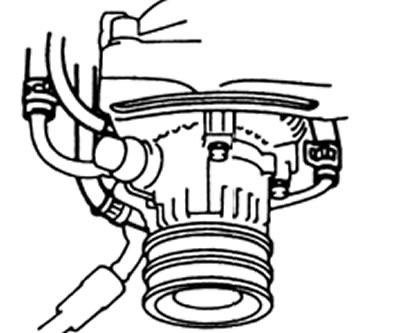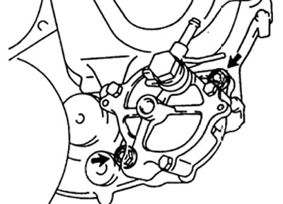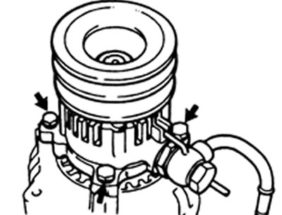 3. Отверните два болта крепления и снимите насос с двигателя.