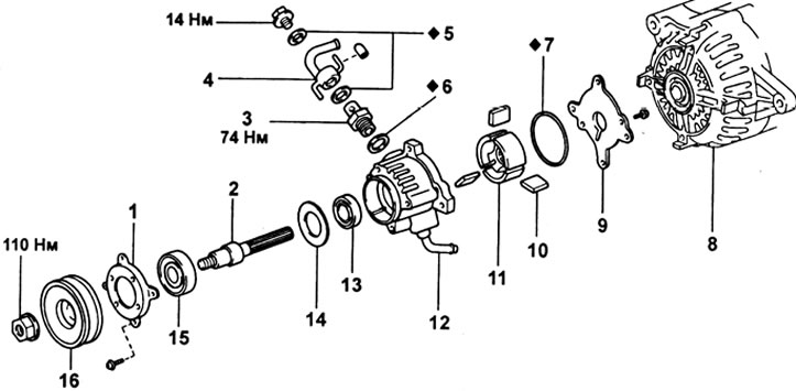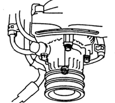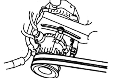 5. Произведите установку вакуумного насоса в порядке обратном снятию. После установки генератора в сборе с вакуумным насосом, перемещая генератор, отрегулируйте натяжение ремня привода и затяните регулировочный болт.
