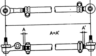 б) Вверните наконечники тяг на равную длину в трубу тяги.