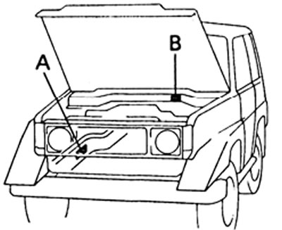 1. Идентификационный номер автомобиля "А" выштампован на наружной поверхности с правой стороны в передней части рамы. Этот номер также выштампован на пластинке с указанием завода-изготовителя "В".
