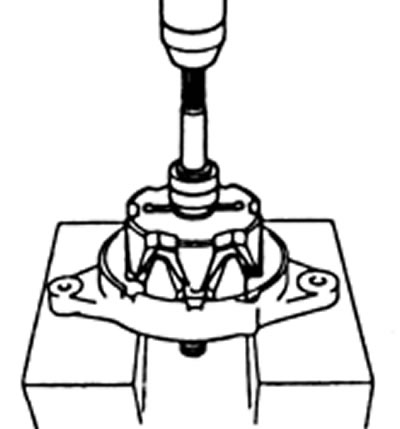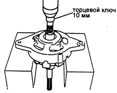 а) Используя торцевой ключ 10 мм и пресс, выпрессуйте ротор.