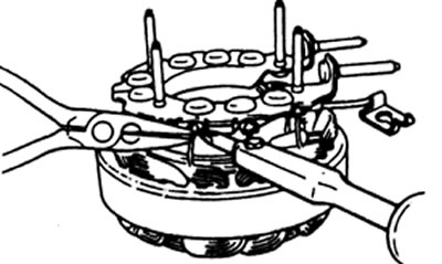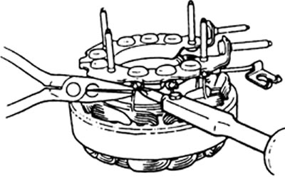 Вывод обмотки статора держите острогубцами во время подпайки выводов.