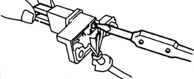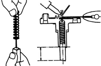 а) Отпаяйте провод щетки от вывода щеткодержателя и извлеките щетку и пружину щетки.