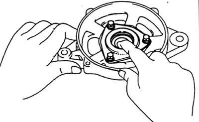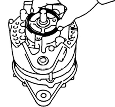 а) Поместите новое уплотнительное кольцо на крышку генератора со стороны выпрямительного блока.