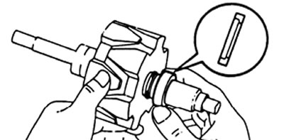 а) Установите пружинное стопорное кольцо в канавку вала ротора.