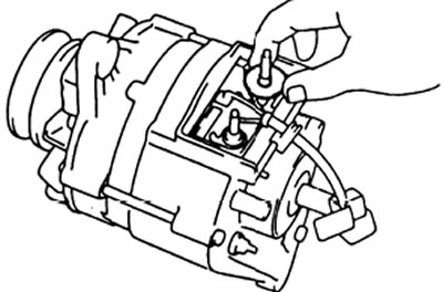б) Установите крышку щеткодержателя на крышке генератора со стороны выпрямительного блока.