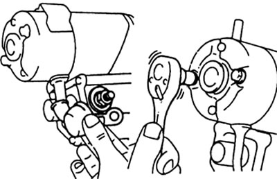 а) Снимите гайку и отсоедините подводящий провод от клеммы электромагнитного выключателя.
