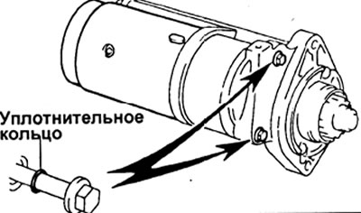 - У стартера 2,2 квт выверните два сквозных винта