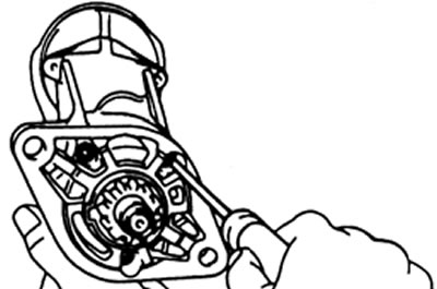 2. Снимите корпус стартера, узел муфты и шестерни.