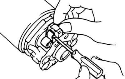 Используя отвертку, отведите пружину назад и отсоедините щетку от щеткодержателя. Отсоедините четыре щетки и снимите щеткодержатель.