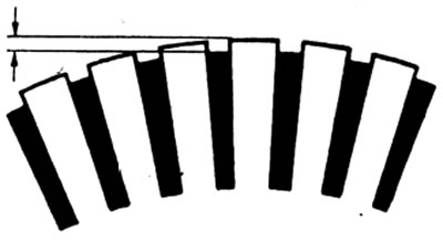 4. Проверьте глубину и чистоту прорезей между ламелями, отсутствие в них постороннего материала. Стандартная глубина прорези: 0,7 - 0,9 мм. Минимальная глубина прорези: 0,2 мм. Если глубина прорези меньше минимально допустимого значения, исправьте прорезь с помощью ножовочного полотна.