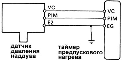 в) Подсоедините к клеммам PIM и EG таймера предпускового нагрева вольтметр и измерьте напряжение сигнала при атмосферном давлении.