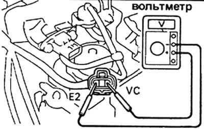 в) Измерьте напряжение между клеммами VC и Е2 разъема.