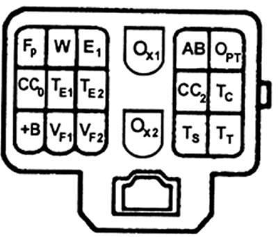 2. Коды неисправностей можно определить по количеству вспышек индикатора повышающей передачи "О/D OFF". Для этого необходимо перемкнуть контакты Е1 и ТЕ1 (Тт) диагностического разъема.