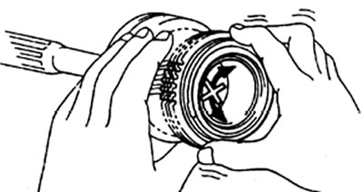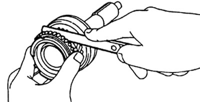 а) Вращая и одновременно нажимая на кольцо синхронизатора, проверьте его фрикционные свойства.