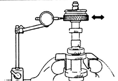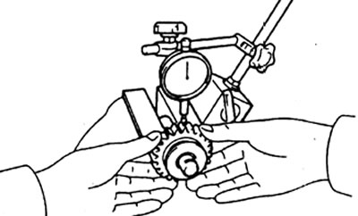 1. С помощью цифрового индикатора измерьте радиаkьный зазор промежуточной шестерни передачи заднего хода.