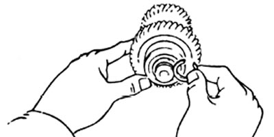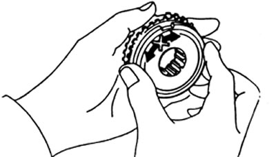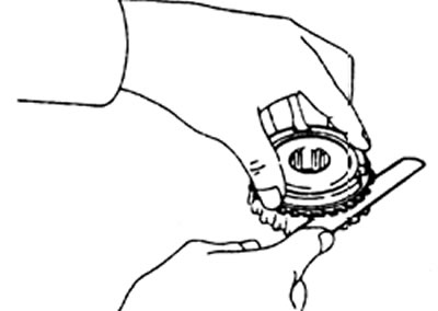 а) Вращая и одновременно нажимая на кольцо синхронизатора, проверьте его фрикционные свойства.
