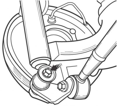 На моделях с 2001 года отсоедините тягу стабилизатора поперечной устойчивости от нижнего поперечного рычага.