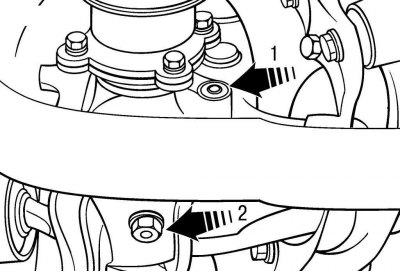 Рис. 2.27. Расположение заливной (1) и сливной (2) пробок картера задней главной передачи на полноприводных автомобилях