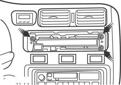 На автомобилях выпуска до 2001 года снимите вещевой ящик и нижнюю центральную накладку панели приборов. Снимите ручки управления и панель управления отоплением и кондиционированием.