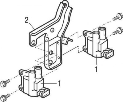 Рис. 6.4. Катушки зажигания (1) и кронштейн (2) моделей с 1998 по 2001 год