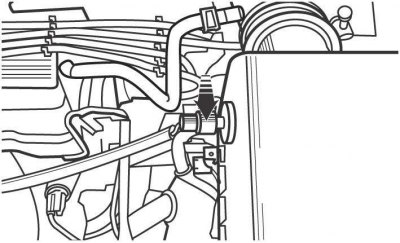 Фиг. 7.10. Местоположение на сензора за температура на въздуха на двигателя (IAT) при модели от 1996 г
