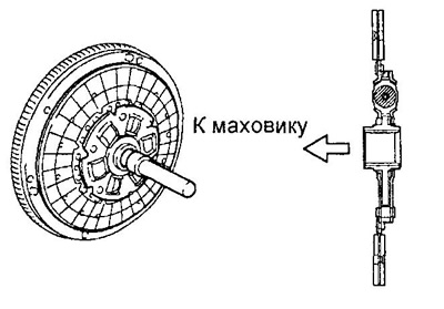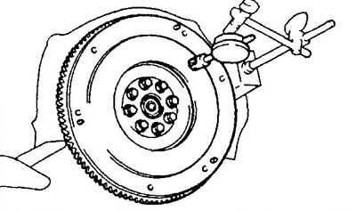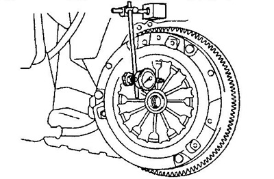 3. С помощта на циферблатен индикатор проверете биенето на маховика.