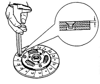 Ако дълбочината е по-малка от допустимата стойност или износването на диска е неравномерно, сменете диска на съединителя.
