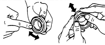 2. Завъртете лагера на ръка, като прилагате сила върху него в аксиална посока. Сменете лагера, ако залепва или трудно се върти.