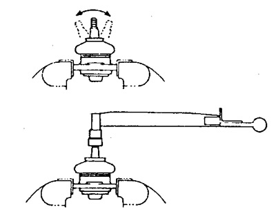 b) Както е показано на фигурата, щракнете щифта на сферичния шарнир напред и назад пет пъти, докато гайката бъде монтирана.
