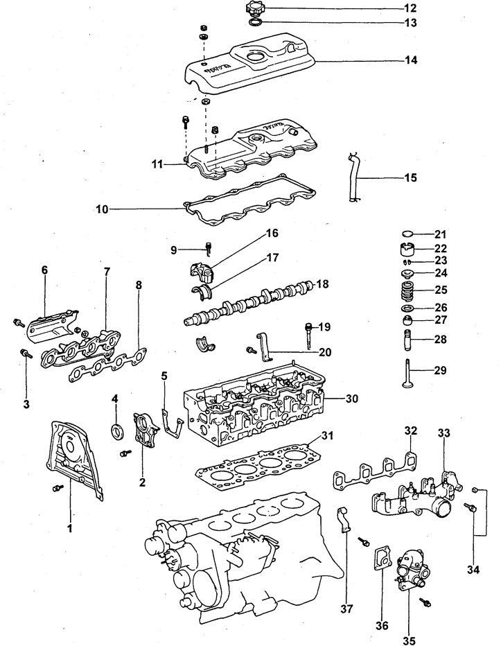 31 - уплътнение на главата на цилиндъра,