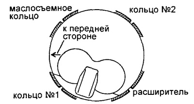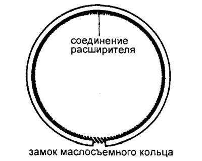 Забележка: Местоположението на ключалката на пръстена на скрепера за масло е от противоположната страна на кръга от ключалката на разширителя.