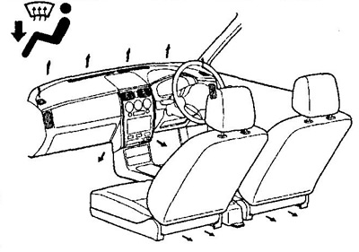 В этой позиции поток воздуха направлен на лобовое стекло, стекла передних дверей, в район наружных зеркал и пол.