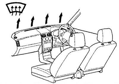 В этой позиции поток воздуха направлен на лобовое стекло и используется в случае запотевания лобового стекла.